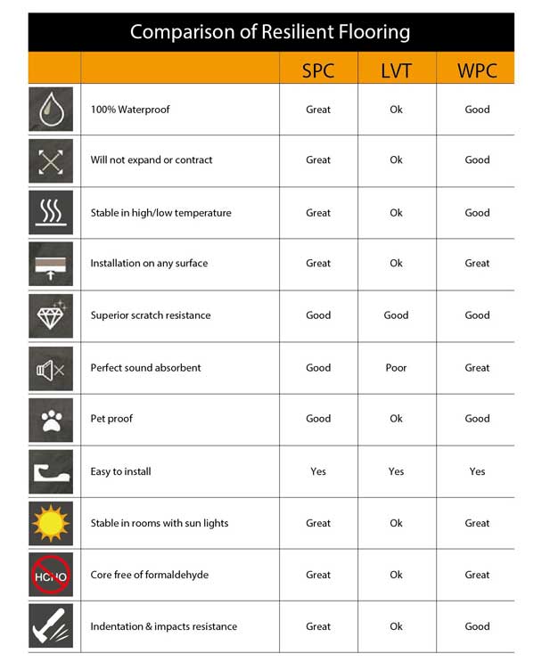 Capibility Comparison Between LVT&WPC&SPC floor: